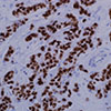 GATA3 (GATA binding protein 3 to DNA sequence [A/T]GATA[A/G]) is a zinc finger transcription factor and plays an important role in promoting and directing cell proliferation, development, and differentiation in many tissues and cell types. GATA3 expression is primarily seen in breast carcinoma and urothelial carcinoma and only rarely found in tumors from other organs, such as endometrial endometrioid adenocarcinoma. GATA3 is expressed in all breast lobular carcinomas and 91% of invasive ductal carcinomas (grade I, 100%; grade II, 89% and grade III, 86%). GATA3 expression seems to be lower in luminal B subtype breast carcinoma. It has also been reported that GATA3 expression is correlated with the status of ER, PR and Her2 in breast carcinoma. GATA3 expression is found in urothelial carcinoma, especially in invasive and high grade tumors. Therefore, anti-GATA3 can be used in a panel of antibodies for diagnosis of unknown primary carcinoma, when carcinomas of the breast or bladder are a possibility.